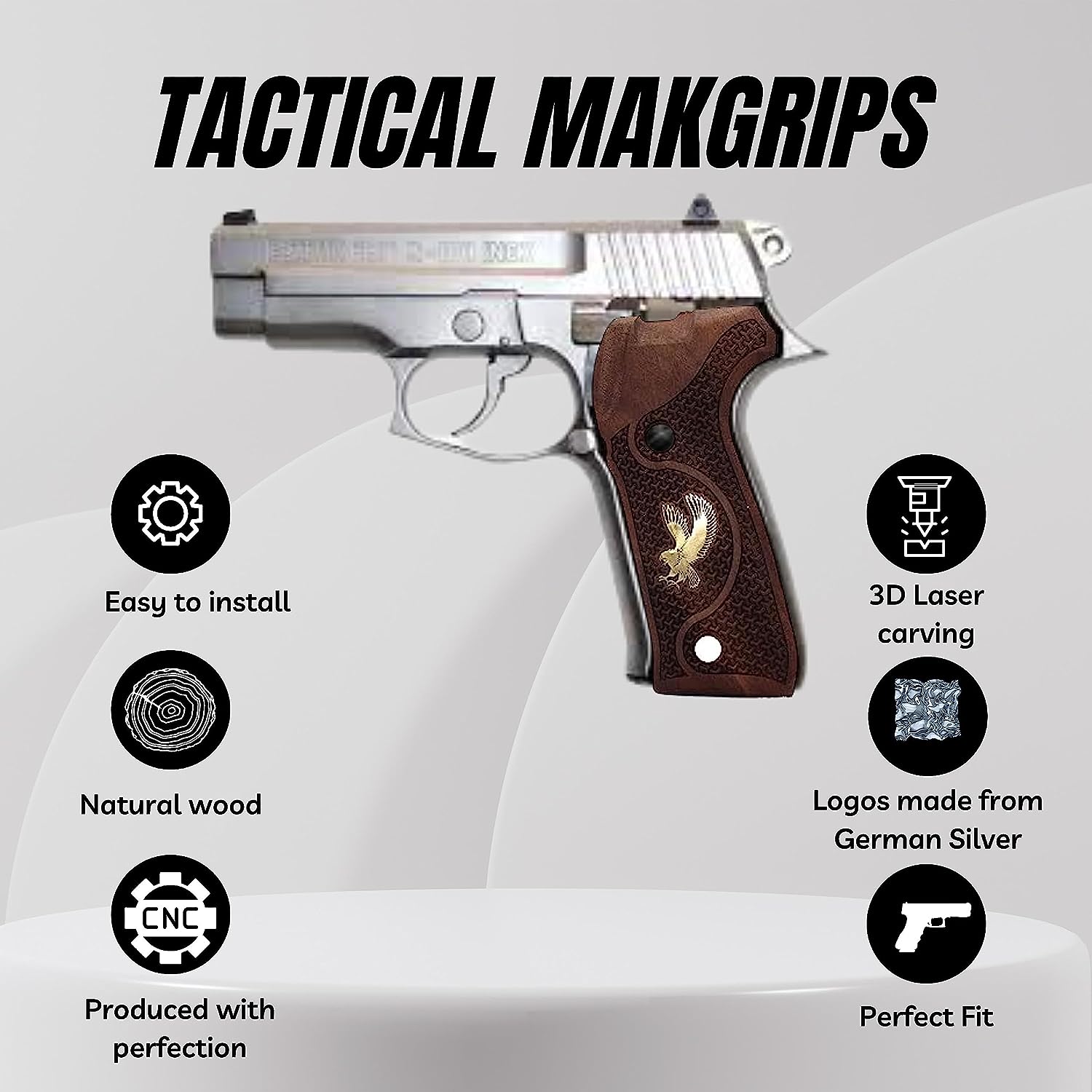 If you are looking for a solid gun handle with a classy look, the wood handles are your choice, they are also very useful and functional, less likely to drag on clothing or print when carrying concealed STYLISH DESIGN