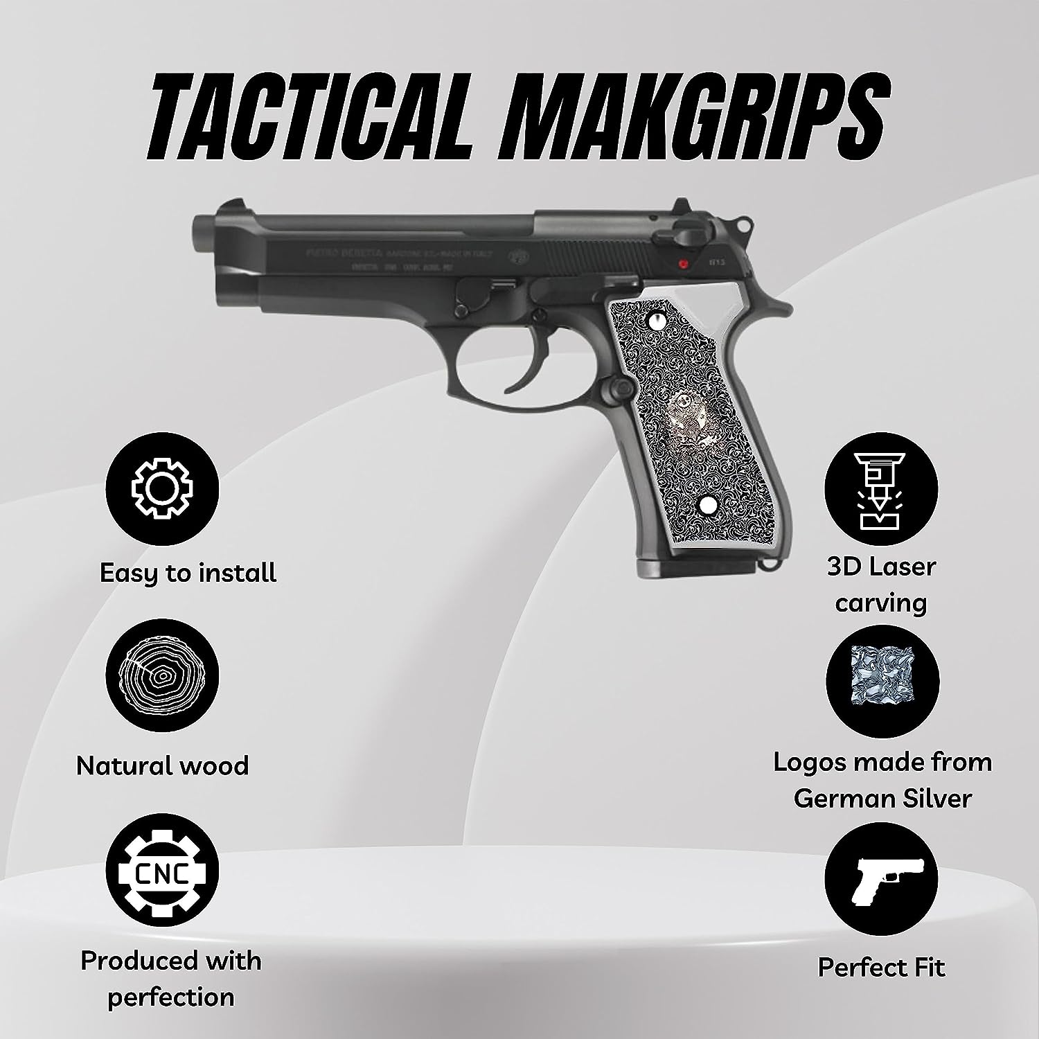 Beretta 92F 92 F 92FS 92 FS 92A1 92 A1 96 98 M9 M9A1 And Girsan Regard MC Silver Metal Grips