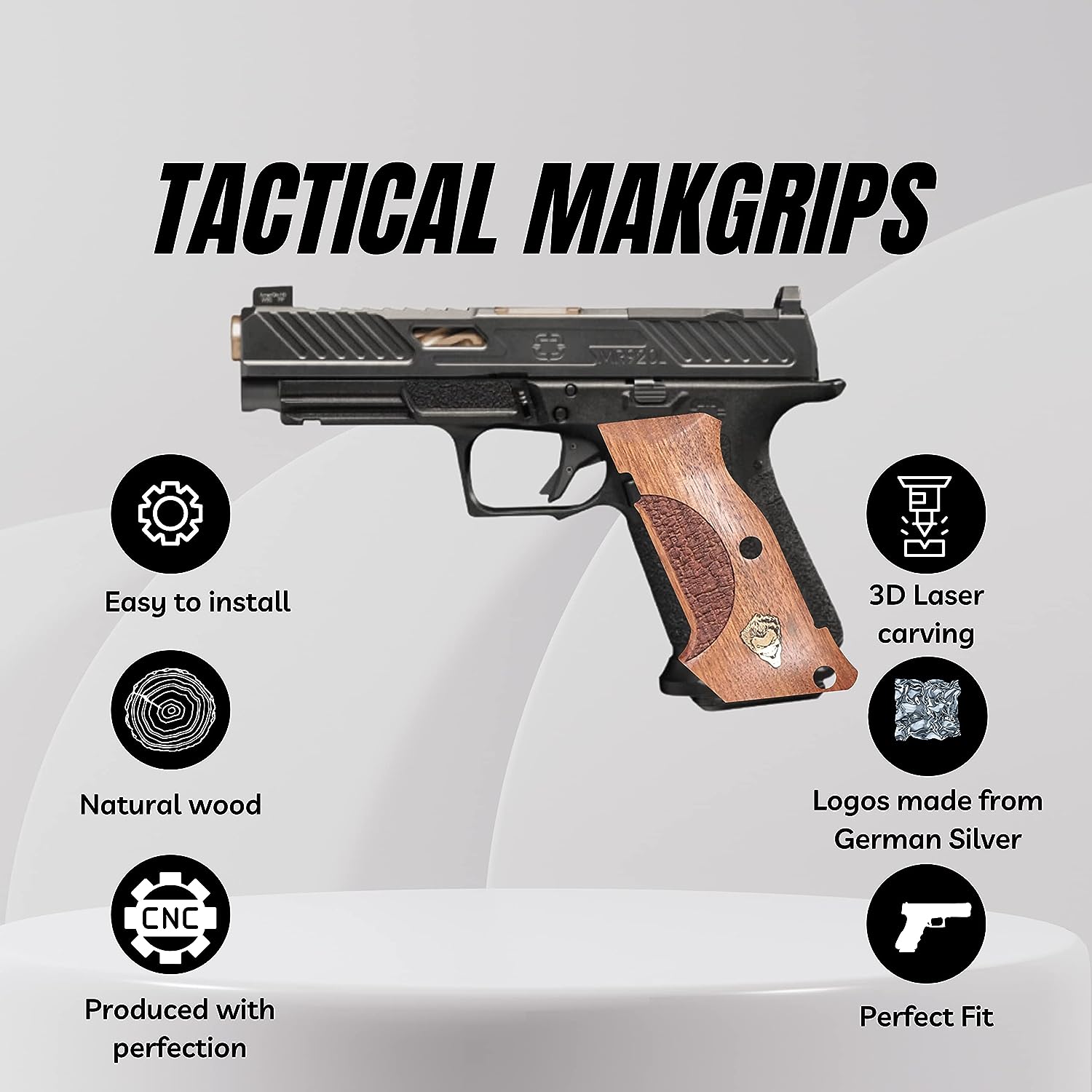If you are looking for a solid gun handle with a classy look, the wood handles are your choice, they are also very useful and functional, less likely to drag on clothing or print when carrying concealed STYLISH DESIGN