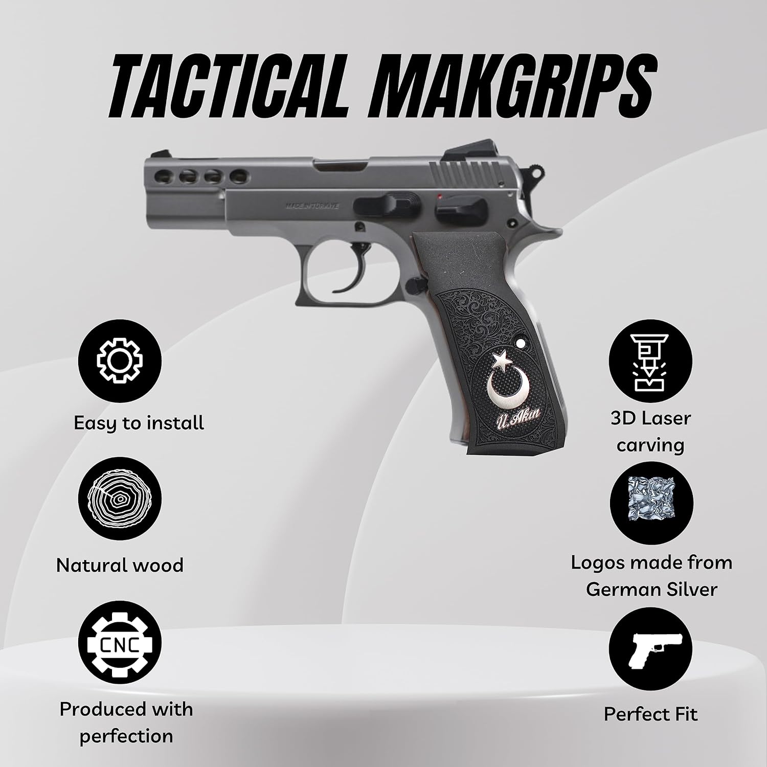 If you are looking for a solid gun handle with a classy look, the wood handles are your choice, they are also very useful and functional, less likely to drag on clothing or print when carrying concealed STYLISH DESIGN