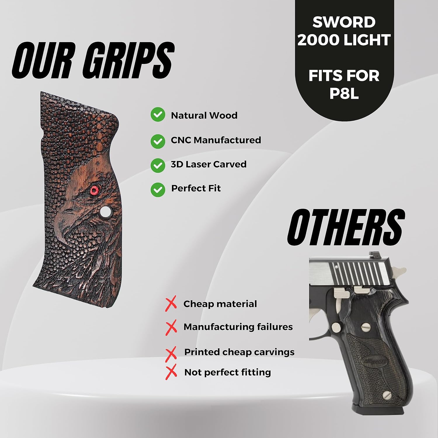If you are looking for a solid gun handle with a classy look, the wood handles are your choice, they are also very useful and functional, less likely to drag on clothing or print when carrying concealed STYLISH DESIGN