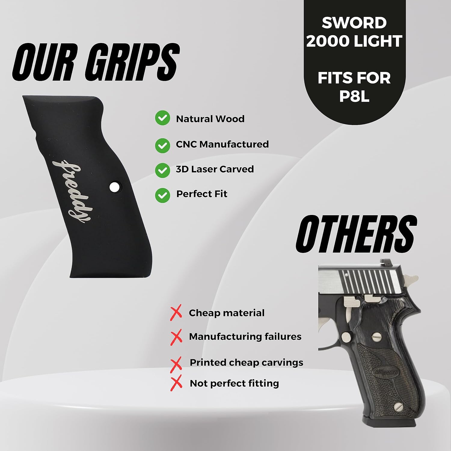 If you are looking for a solid gun handle with a classy look, the wood handles are your choice, they are also very useful and functional, less likely to drag on clothing or print when carrying concealed STYLISH DESIGN