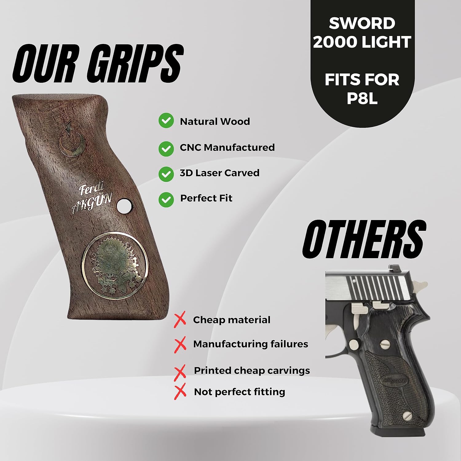 If you are looking for a solid gun handle with a classy look, the wood handles are your choice, they are also very useful and functional, less likely to drag on clothing or print when carrying concealed STYLISH DESIGN