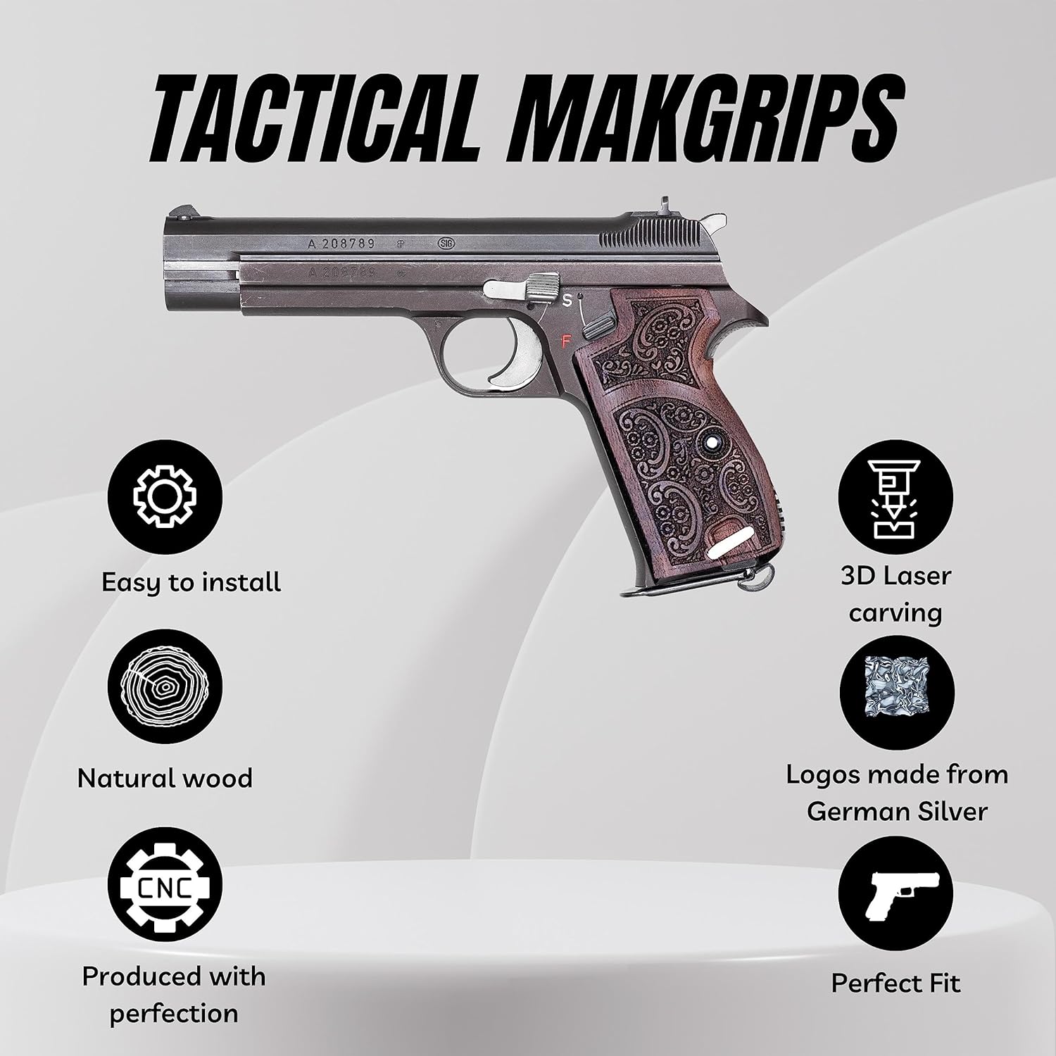 If you are looking for a solid gun handle with a classy look, the wood handles are your choice, they are also very useful and functional, less likely to drag on clothing or print when carrying concealed STYLISH DESIGN