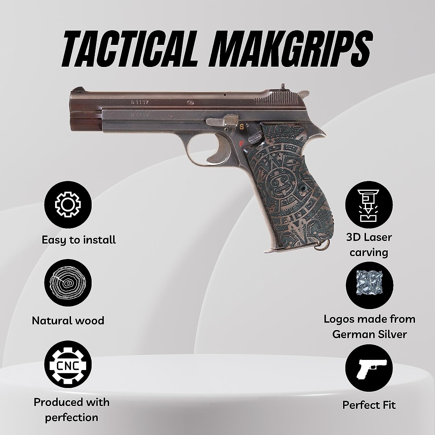 If you are looking for a solid gun handle with a classy look, the wood handles are your choice, they are also very useful and functional, less likely to drag on clothing or print when carrying concealed STYLISH DESIGN