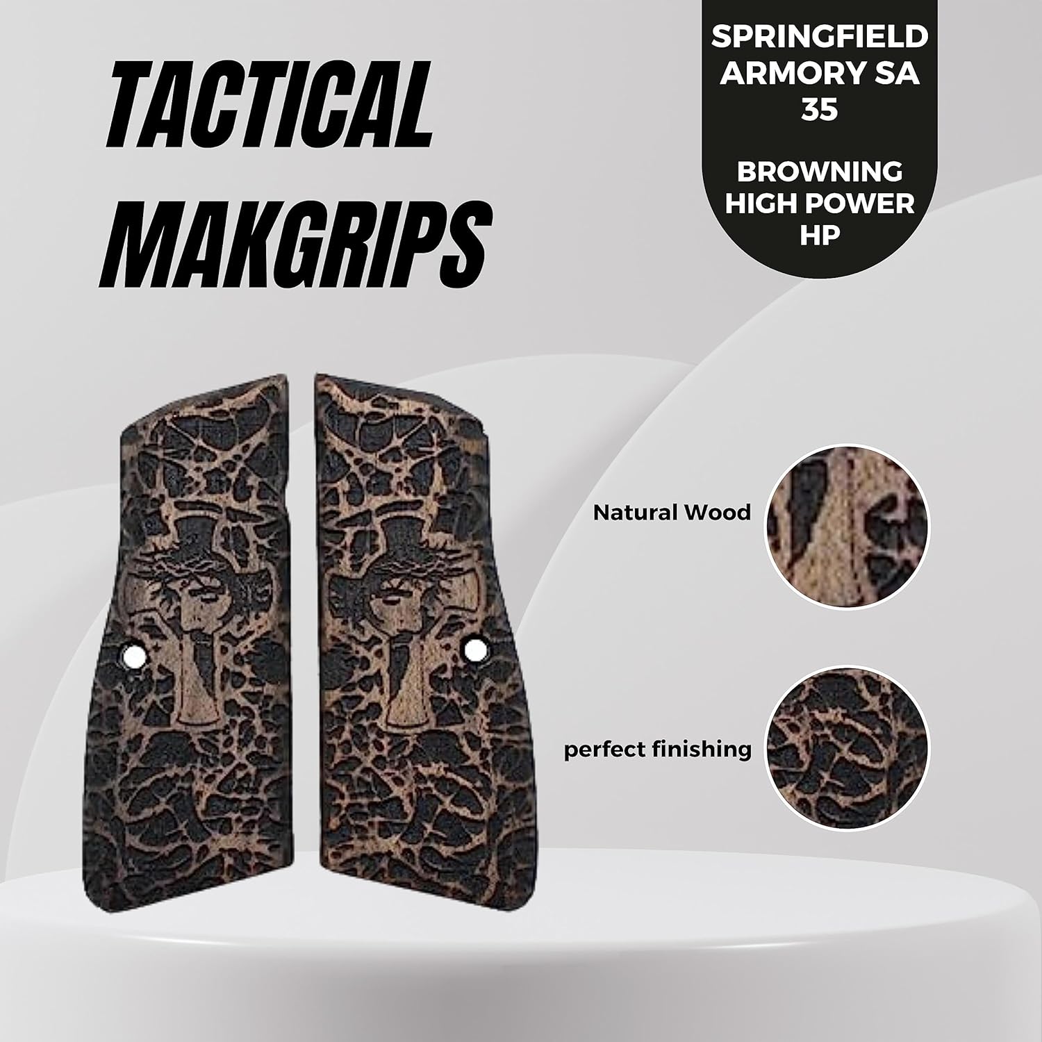 If you are looking for a solid gun handle with a classy look, the wood handles are your choice, they are also very useful and functional, less likely to drag on clothing or print when carrying concealed STYLISH DESIGN