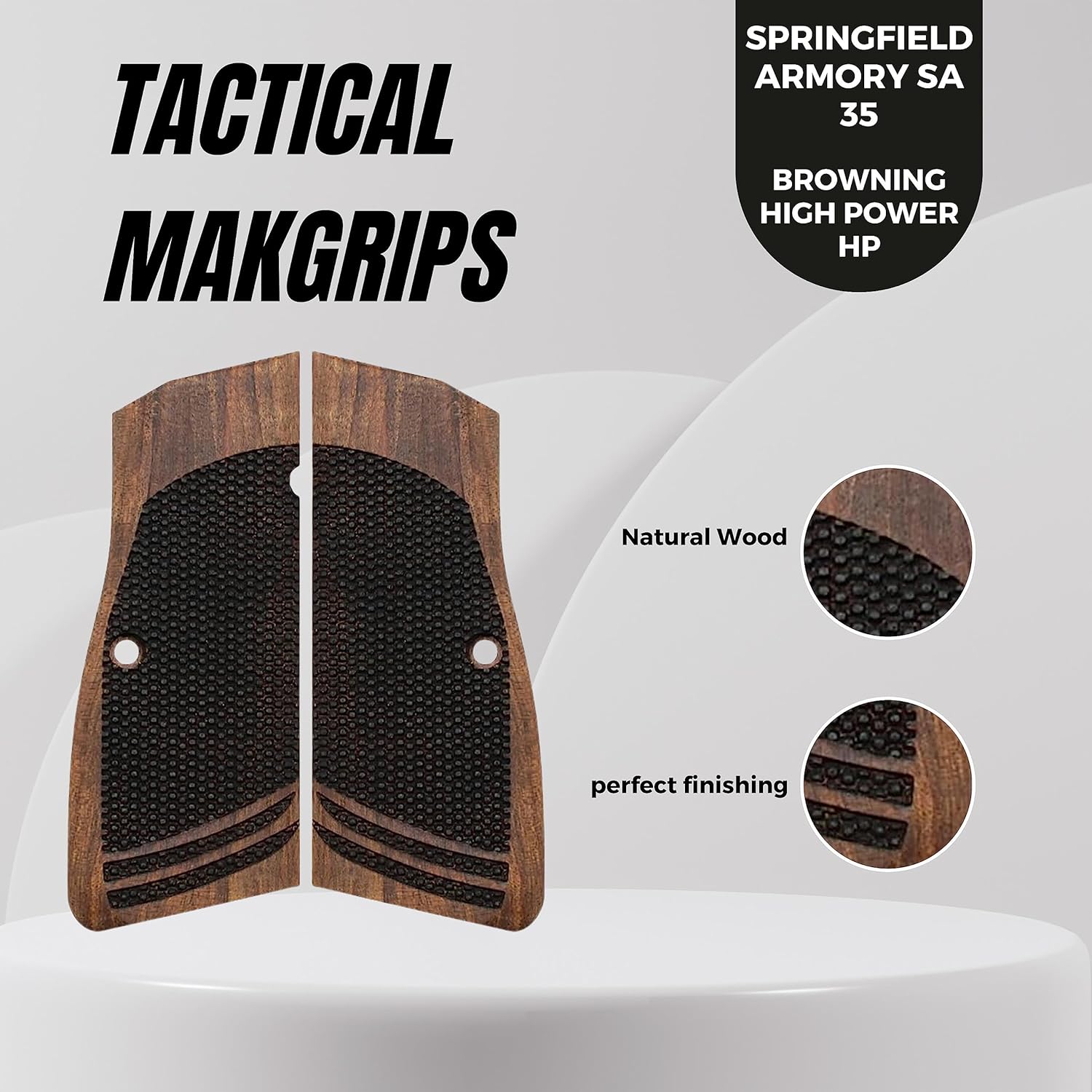 If you are looking for a solid gun handle with a classy look, the wood handles are your choice, they are also very useful and functional, less likely to drag on clothing or print when carrying concealed STYLISH DESIGN