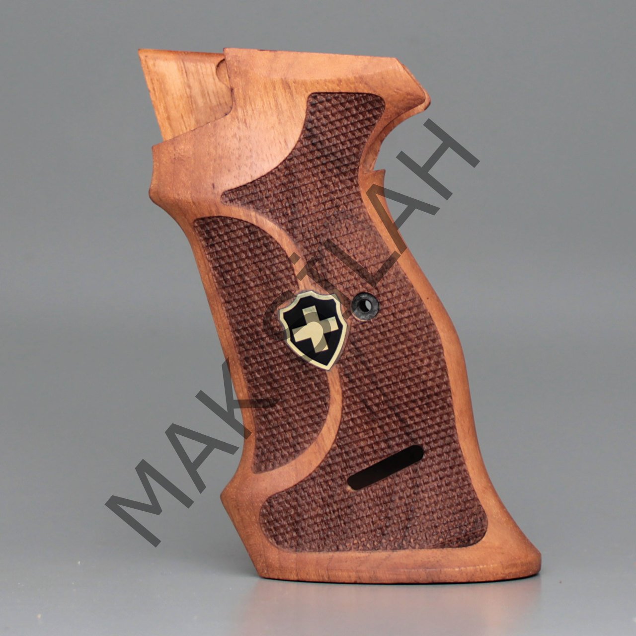 Sig P 210 Atış Sarı Metal Kalkan Haç Mineli Nokta Motif Ceviz Ahşap Silah Kabze